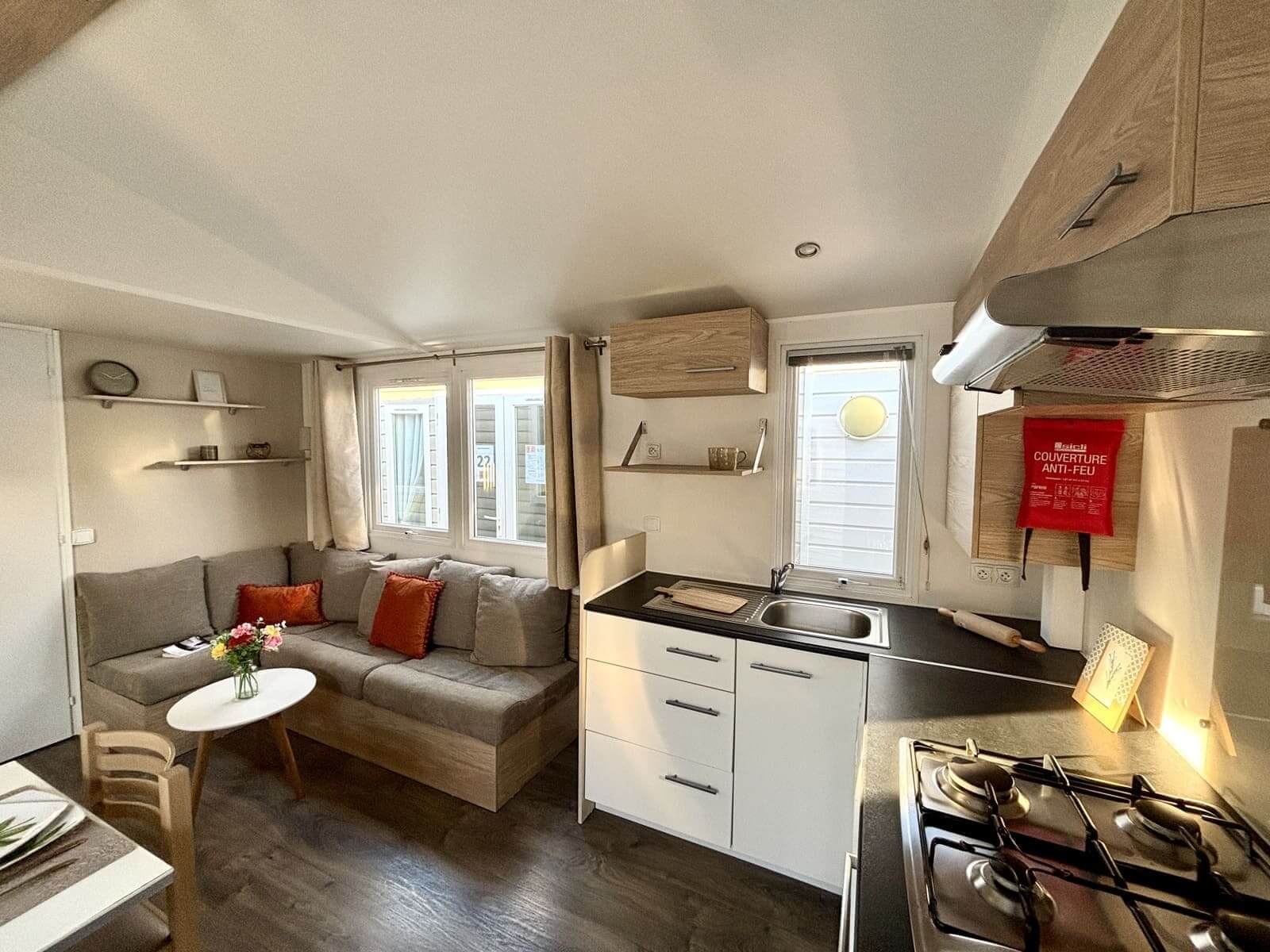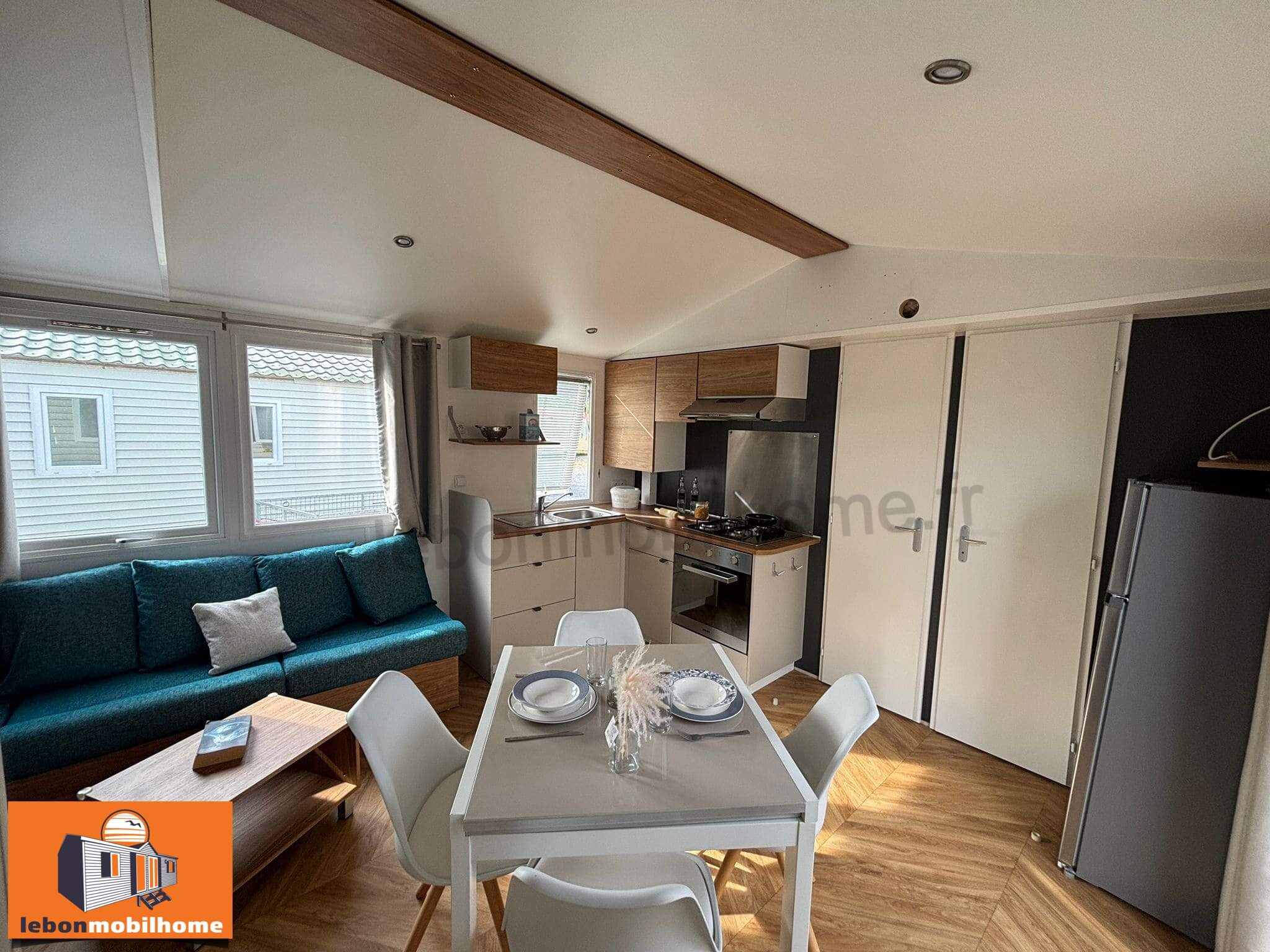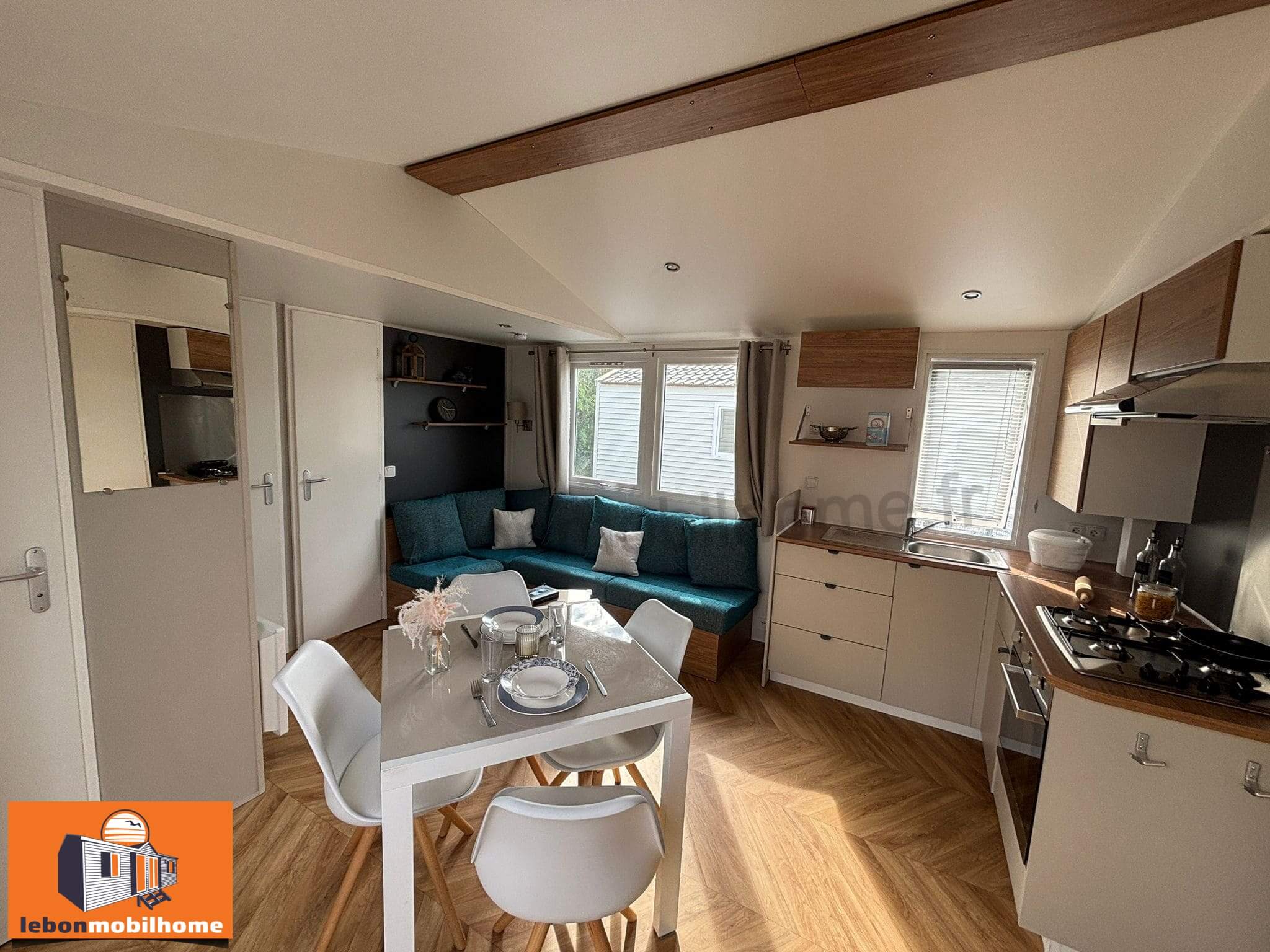 Ce mobil-home d’occasion de 37 m², surface habitable 31,80 m2 comprend trois chambres, une grande pièce de vie centrale et une cuisine entièrement équipée. Idéal pour une famille ou comme résidence secondaire, il est vendu clés en main, avec livraison et installation comprises.