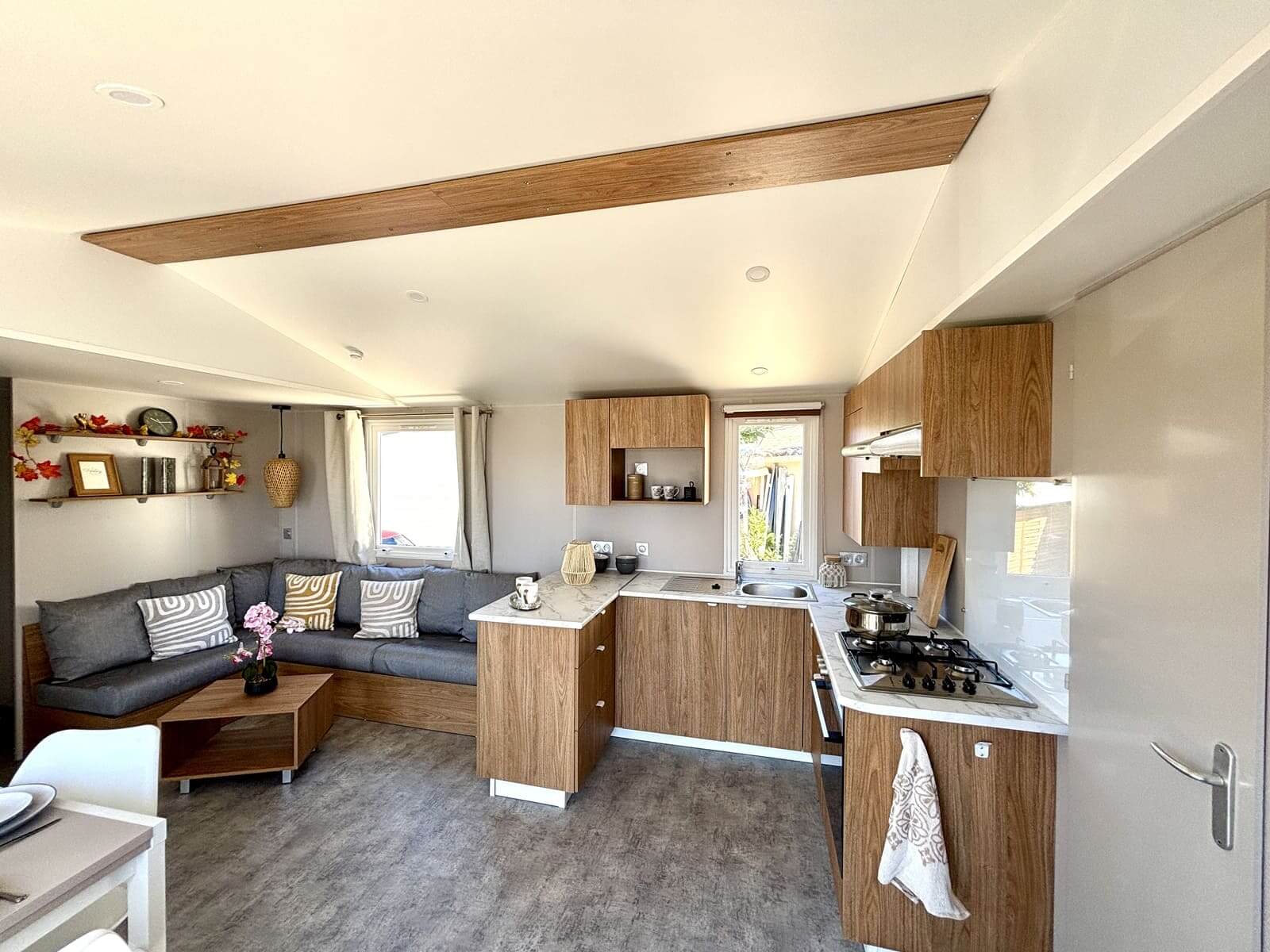 Ce mobil-home neuf, en plus d’être adapté aux personnes à mobilité réduite, est très agréable à vivre et dispose de nombreux rangements.