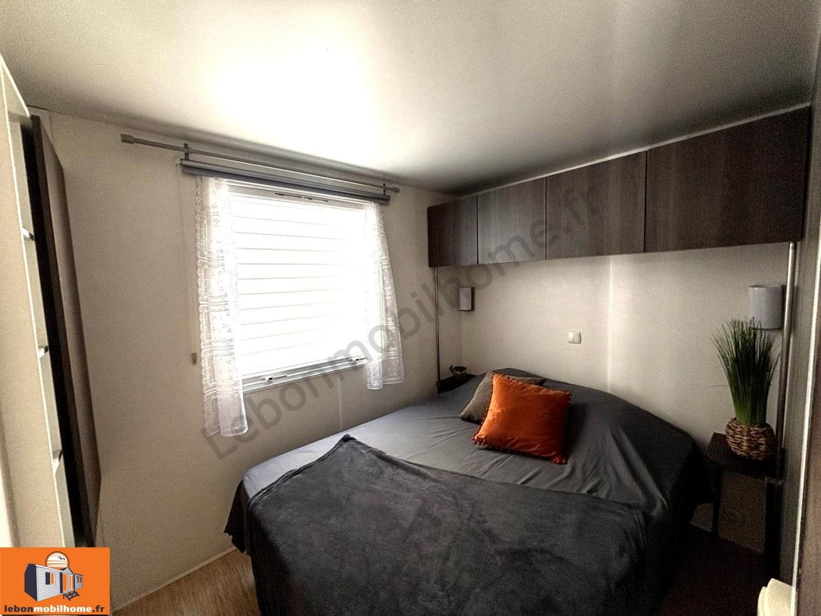 Ce mobil-home de 31 m² dispose de 2 chambres, d’un salon central lumineux, d’une cuisine équipée et offre un confort optimal pour une utilisation saisonnière, que ce soit sur une parcelle de camping, en PRL, ou sur un terrain privé.