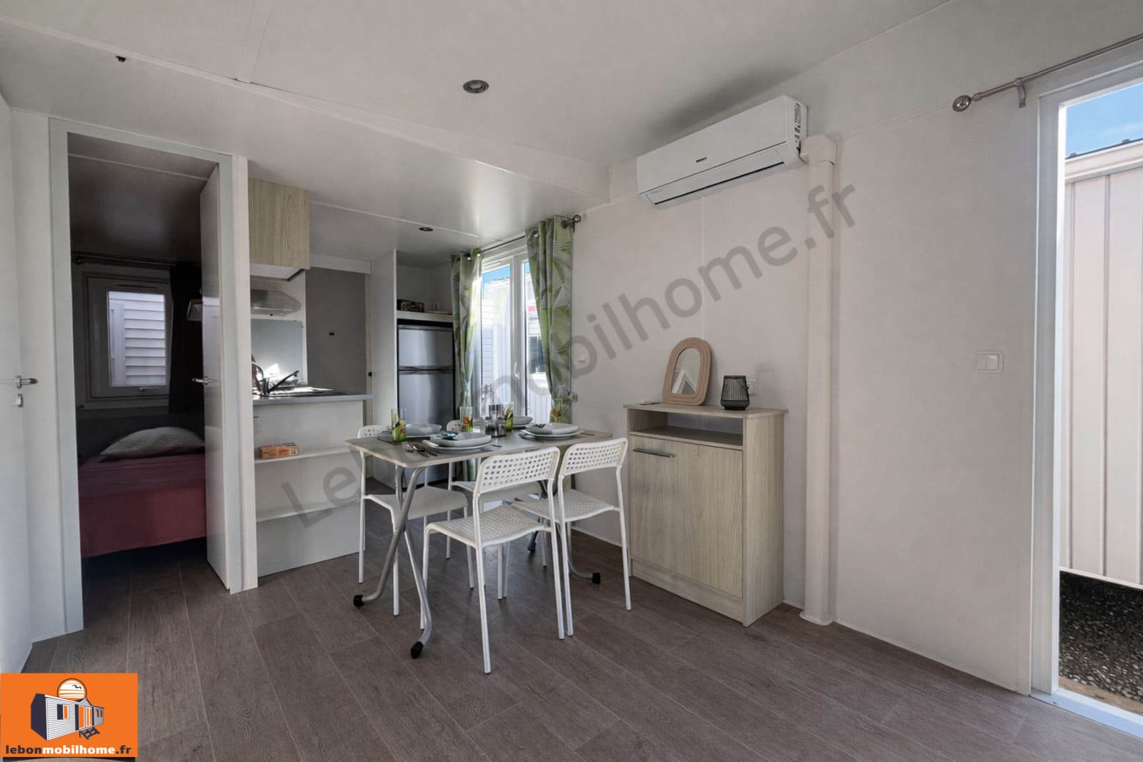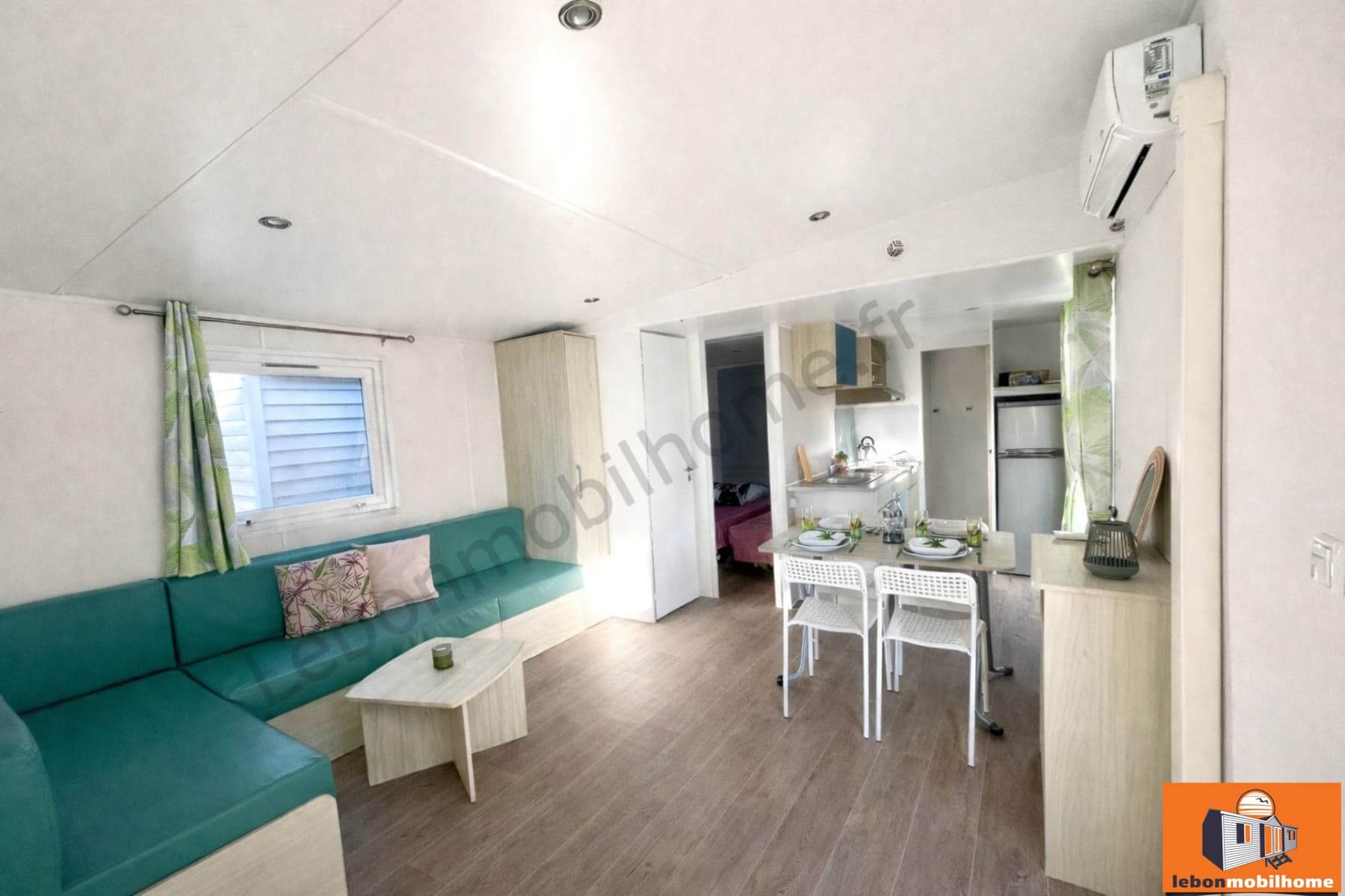 Modèle à saisir : mobil-home d’occasion Trigano Evo 33.2 année 2018, en très bon état, sans travaux à prévoir. Ce mobil-home 2 chambres de 33 m² (8,50 m x 4 m) offre un espace de vie spacieux, lumineux et confortable, idéal pour une résidence secondaire ou un hébergement de loisirs. Il dispose d’un grand salon, d’une cuisine équipée, de nombreux rangements, d’une salle d’eau fonctionnelle et d’une excellente isolation. Un mobil-home prêt à poser, propre et parfaitement entretenu.
